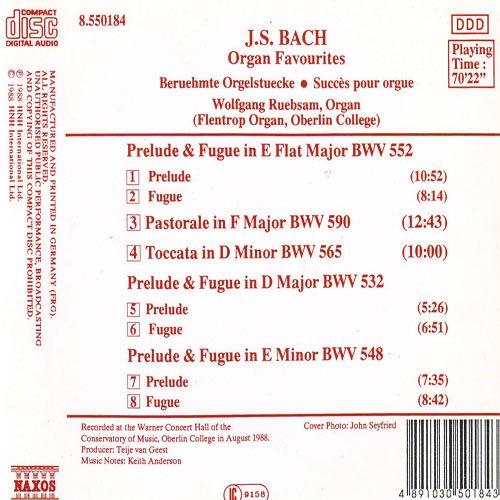巴赫是一个虔诚的宗教徒,他一共为教堂创作了150首管风琴圣咏曲.管风琴圣咏曲是指根据教堂圣咏旋律作曲的一切管风琴曲.在17世纪以前,管风琴并不为教徒的歌唱作伴奏,而是为祭司或合唱团作序奏或和合唱团交替单独地演奏,是合唱的代用者.根据教会1598年制定的,"在教徒咏唱之前或之间,风琴并非用来演奏不常听的乐曲或经文歌,而是必须演奏将继续咏唱的歌曲.为使风琴和歌唱的时间不过分长,风琴师在前奏后的教徒咏唱中间,是不可演奏一次或两次以上的."17世纪的四,五十年代,管风琴在教会中一般已作为教徒咏唱的伴奏.在巴赫的年代,管风琴伴唱的习惯虽已风行,但在莱比锡,管风琴与咏唱还是交替进行的状态. 因为,管风琴在教堂中早期的作用,是合唱团的代用者或交替者,因此,管风琴圣咏曲在技法, 形态上,与声乐曲圣咏经文歌大致一致,是合唱曲也是风琴曲.在巴赫以前,管风琴圣咏曲最 重要的作品是德国作曲家沙伊(SamuelScheidt,1587-1654)的(Tabula ture nova)(1624年,共3卷).沙伊德之后,管风琴圣咏曲的发展,形成了完全对立的两派, 一派是以布克斯特胡德(Dietrich Buxtehude,1637-1704)为代表的北德乐派,另一派是以帕赫贝尔(Johann Pachelbel,1653-1706)为代表的中德乐派;初期的圣咏都是泛 模仿经文歌的形式产生,其方式是圣咏旋律每一行为单位的模仿,一行终止后再开始第二行 模仿.这也就是把数个不同主题的赋格曲发展部连接组成一首作品,全曲缺少统一.布克 . 斯特胡德的功绩是进一步强调各部之间的差异,加强对比的效果.巴赫从这两派中间汲取营养,则把管风琴圣咏曲这种形式发展到了最高境界.他把帕赫贝尔追求的整体性和布克斯特胡德追求的局部的丰富性有机地统一了起来,从技巧上达到了后人难以逾越的高度. 巴赫的是风琴圣咏曲中的重要作品,这部曲集编定于1717年,其中的作品 大约作于1708-1717年,魏玛时期.巴赫在亲笔谱开头,有这样的文字:"风琴小曲集,这是给 初学的风琴家,以各种各样方式发展圣咏曲的指引.由于收入此集的圣咏曲是以助奏方式处 理脚键盘,所以也是学习和熟练脚键盘技法的指导手册.愿高高在上的神以其神关,助可怜的人依此能有所帮助."