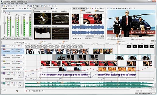 The Vegas Pro 8 interface provides a fully customizable workspace for accomplishing a wide range of production requirements. Dock multiple windows across multiple monitors, and save your layouts to fit specific editing tasks; nest Vegas projects within the timeline, customize and save keyboard commands, and use application scripting to automate repetitive tasks. System-wide media management produces maximum efficiency. Network rendering saves time by using multiple computers and networked drive arrays to render complex projects. Vegas Pro software also supports 24p, HD and HDV editing. More about the Vegas Pro workflow