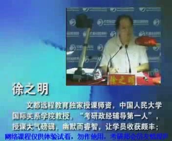 : 准确的说,该视频为备考2009年1月份的辅导视频。但是,同学们肯定知道,历年考研的考查内容基本上变化不大,到8份各科大纲出来了,大家仔细比较,把新增考点和删除考点弄清楚就OK了。 所以大家现在完全可以看该套教程,特别是数学,去年我考研的时候,没有报培训班,就是下载的2005年的数学考研视频看了看,没有任何问题。 特别指出今年的政治好像课本有改动,二战的同学请特别注意这一点。 对于考研培训班,本人认为应该理性,家里条件好的同学可以报名,但是如果不愿意花这上千元人民币,完全可以自己安心看书,只要抓紧就可以了,不上培训班,一样能考得好,甚至可以考得更好,因为上培训班的同学可能产生依赖心理,而且被老师拖着走,学的内容也不能及时消化,效果适得其反,本人亲身经验和同学总结。 一句话,考研这条路,很孤独,靠自己,坚持下来,就是成功的! 祝各位同学2010年元月考试大捷! 本人第一次发布资源,请多支持。资源来源于网络,现在返回至网络。如有任何版权问题,与本人无关,谢绝跨省!