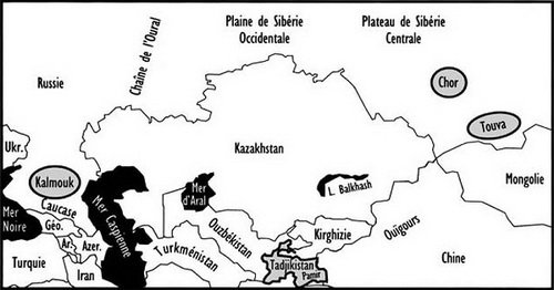 (中亚地区,4个灰色区域即本唱片考察的对象)