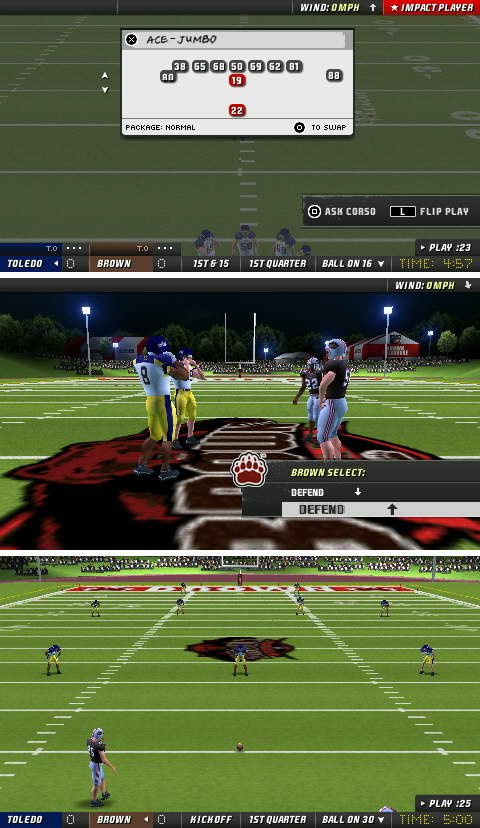 美国电子艺界EA SPORTS公司日前公布了这款EA运动系列游戏:《美国大学:橄榄球10》(NCAA Football 10)将2009年夏季在全平台主机发售的消息,本作预计将会推出包括:PS2、PS3、PSP和XBOX360等在内的多个主机版本。目前本作的官方网站也已开通,并放出多张游戏的最新画面,供各位玩家参考。 EA Tiburon工作室推出创新十足的:《美国大学:橄榄球10》,庆祝此畅销且知名的游戏系列超过二十载。计有超过85项新特色与改良,包括针对各种类型玩家量身设计的适合游戏内容、进步的画面和动画,以及网络播送风格的呈现方式,带来最逼真的橄榄球体验。 PSP版《美国大学:橄榄球10》将会根据掌机的携带性特别设计,通过独特的操控机制、模式和呈现方式,带来充满乐趣、容易上手且富有创意的游戏内容。无论玩家的技巧如何,通过运用从简单到高级这三种任君挑选的游戏风格,可让玩家具备充分的竞争实力。PS2、PS3、PSP和XBOX360版《美国大学:橄榄球10》目前预定2009年7月份在北美发售。喜欢体育类游戏的玩家不可错过本作。