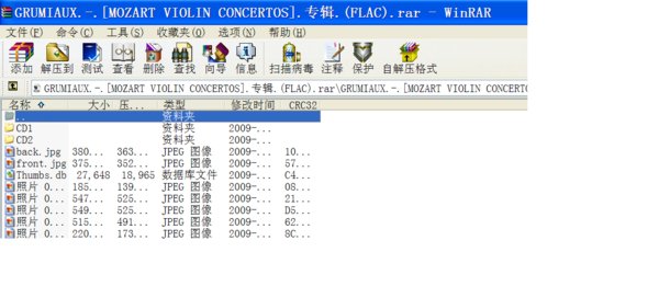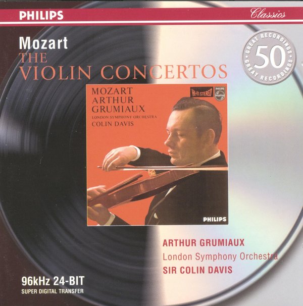 格鲁米欧的莫扎特小提琴协奏曲全集,三星带花,经典地位无可动摇。VC上也有,不过我发的这个版本是用96KHz 24-BIT超级数码转换技术重新制作发行的,是飞利浦用该技术制作的50个伟大录音系列中的一张,大家下了听一下,效果是否比较好。CD1里还收录了两首小提琴奏鸣曲,哈斯姬尔伴奏。