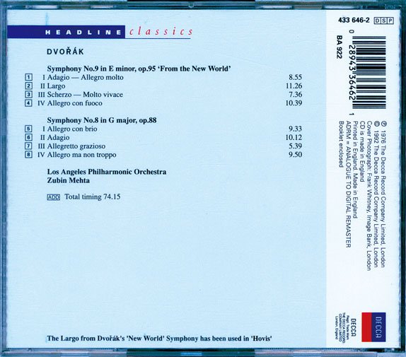 Zubin Mehta 祖宾·梅塔 -德沃夏克:新世界交响曲、第八交响曲 Dvorak: New World Symphony Symphony No.8