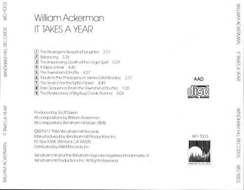 William Ackerman是Windham Hill公司的创始人之一。这是他1977年的一张吉他音乐,取材于他的亲情、友情的故事,1977年——感觉很遥远的年代,那时的NEW AGE并未有现在这般的气候,William Ackerman的曲风依然在民谣、爵士之间徘徊,并对新的领域进行探索。 听吉它的弹奏是一种很好的休息,一种积极的放松,当我们的思绪随着那跳动的音符上下纷飞时,心中充溢的便满是美好的东西了…… 偶然找到一张尘封已久的cd,确实是太久了,不知这样的类型还有人要没,当年将它最为听Grindcore的缓冲。 The lyrical strains of "The Bricklayer's Beautiful Daughter" (the memorable opener on William Ackerman's second album) confirm that the artist was on to something huge in popular music. Nobody knew what to call this new breed of gentle instrumental adventurism. It Takes a Year, like all the early Windham Hill albums, was a breath of pure air at a time when pop music was stuffed with commercialization and irrelevance. Ackerman adeptly blended folk, bluegrass, jazz, and classical influences into an accessible, mild-mannered hybrid style, strong on emotional expression and lyrical depth. Ackerman's solo technique is not showy, and others like Leo Kottke and Michael Hedges may have been more virtuosic in the chops department, yet Ackerman's trump card is his impressionist command of the acoustic guitar. His use of alternate tunings, overdubs, and a sensitive ear for melody helped to trademark this uncluttered sound, tuneful and rich in harmonic overtones. Some of the up-tempo numbers like "The Townshend Shuffle" have a bluegrassy flavor and, in general, the folk influences are readily apparent. But ultimately the music, much of it composed in the early '70s, stands out because it sheds the musical labels and carves its own space — deep emotional sentiments set into calm and reflective backgrounds. It's an open-ended sound, well suited to the spaces of California and the Western U.S. from whence it grew. Although the production quality varies from tune to tune making it a less consistent set than the follow-up Childhood and Memory, It Takes a Year is historically important for new age collectors because it built upon Ackerman's debut and set the mold for things to come. ----------ALL MUSIC 带宽有限,上传50k,每日10:00-22:00在线(周六日除外)