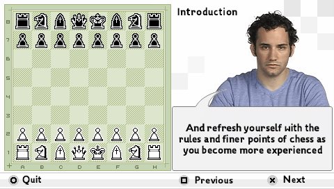 本作是由国际知名的象棋大师Josh Waitzkin负责监督,关于Josh Waitzkin本人,他曾是国际象棋大师和八次全国国际象棋冠军。游戏采用从他编著的入门书籍《学习的艺术》中选择的课程和介绍来指导玩家把握国际象棋的基本规则进而学习如何精通这项游戏。玩家可以在单人游戏模式中实践刚刚学到的技能,也可以通过局域网或互联网联机挑战他们的朋友。