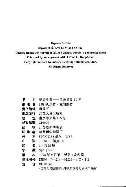 ◎译 名 记者生涯:目击世界60年