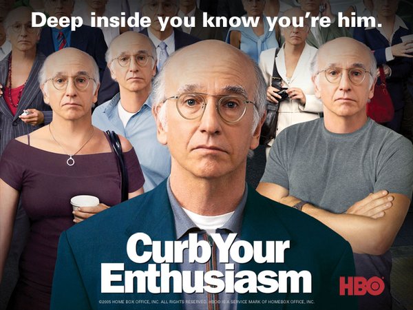 Curb Your Enthusiasm is the brainchild of star-creator Larry David who co-created Seinfeld and was the basis for the easily rattled George Costanza (who was played by Jason Alexander). Like George, David has a tendency to speak too much, blow things out of proportion, and, most often, fail in the end (and often liking it that way). David's new show is also like its predecessor: it's about "nothing" except following the day-to-day ramblings of a sometime writer and comic (this time in L.A.). Eternal questions stemming from universal daily dilemmas are honed to perfect comedic absurdity. A notable exception is the show is only scripted by plot; much of the action is improvised.