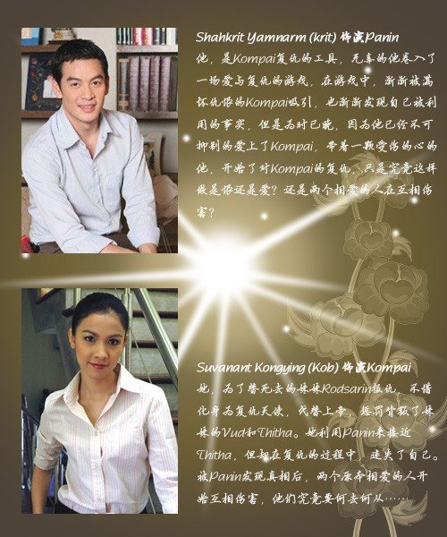 原来,Vud一直喜欢着Kompai,为了能够接近她,就成了Rodsarin的男朋友,可是在知道Kompai对自己毫无兴趣之后,Vud又将矛头转向了自己未婚妻的的朋友,Thitha。正是这两人的不忠,伤透了Rodsarin的心,也间接导致了她的死亡。