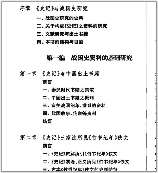 : 中文版序言 序章《史记》与战国史研究 一、战国史研究的史料 二、关于构成《史记》之资料的研究 三、文献研究与出土书籍 四、本书的结构与目的 第一编 战国史资料的基础研究 第一章 《史记》与中国出土书籍 第二章 《史记》三家注所见《竹书纪年》佚文 第三章 《史记》战国纪年再探——以睡虎地秦简《编年记》为线索 第四章 《史记》战国世系与《世本》 第五章 马王堆帛书《战国纵横家书》的结构与特征 第六章 关于《战国策》特征的分析——以战国故事与传说资料为线索 第二编 战国七国的史料学研究 第一章 对《史记·秦本纪》的史料考察 第二章 对《史记·赵世家》的史料考察 第三章 《史记·韩世家》的史料考察 第四章 《史记·魏世家》的史料考察 第五章 《史记·楚世家》的史料考察 第六章 《史记·燕世家》《田敬仲完世家》的史料考察 终章 从史料学来看战国七国的地域特色 前言 一、《史记》中纪年的设定 二、《史记》战国史料的编纂意图 三、《史记》战国史料的地域特色 结语 原出论文一览 主要引用文献底本一览 追加文献一览 后记 译者后记