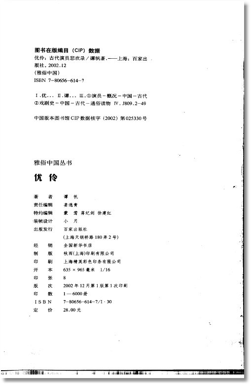 优伶-古代演员悲欢录 雅俗中国丛书 谭帆 百家出版社 扫描版[PDF]