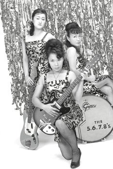 The 5.6.7.8's formed when Sachiko and Yoshiko "Ronnie" Fujiyama, two sisters from Tokyo who both shared a passion for rock and roll, founded the band in 1986 with two other members. Originally, the lineup consisted of Yoshiko on vocals and guitar, "Rico" on second guitar, "Yoshie" on bass guitar and Sachiko on drums. After several line-up changes (including the bassist Yoshiko Yamaguchi, who was the bassist featured in the Kill Bill movie), the band eventually became a threesome after Rico and Yoshie's departures. Yoshiko and Sachiko are still the main components in the band, and now Akiko Omo has rejoined the band as the bass guitarist (She originally joined the 5.6.7.8's in the early 1990s).