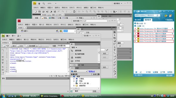 中文名: 网页三剑客 Dreamweaver、Flash、Fireworks CS4 简体中文版 之 永不重装版
