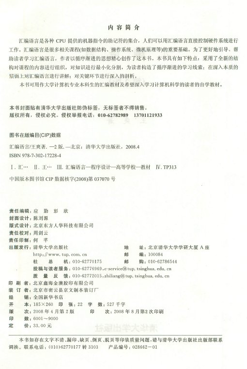 汇编语言 第2版 中文高清PDF版 王爽 [PDF]