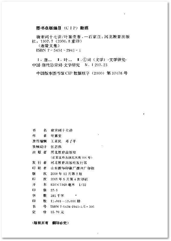 唐宋词十七讲 叶嘉莹 扫描版[PDF]