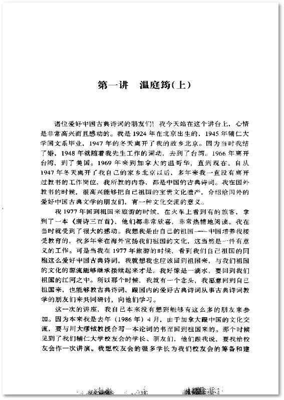 : 第一讲 温庭筠(上) 第二讲 温庭筠(下) 第三讲 韦庄 第四讲 冯延巳(上) 第五讲 冯延巳(下) 李璟 李煜(上) 第六讲 李煜(下) 晏殊 欧阳修(上) 第七讲 欧阳修(下) 晏几道 柳永(上) 第八讲 柳永(下) 苏武(上) 第九讲 苏轼(下) 秦观(上) 第十讲 秦观(下) 周邦彦 第十一讲 辛弃疾(上) 第十二讲 辛弃疾(下) 第十三讲 姜夔(上) 第十四讲 姜夔(下) 吴文英 第十五讲 王沂孙(上) 第十六讲 王沂孙(中) 第十七讲 王沂孙(下)