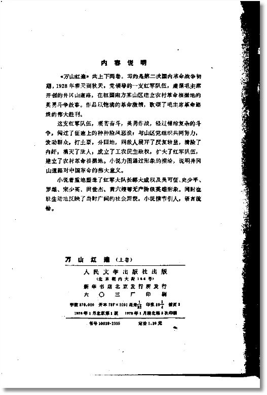 《万山红遍》共上下两卷。写的是第二次国内革命战争初期,1928年春天到秋天,党领导的一支红军队伍,遵循毛主席开创的井冈山道路,在祖国南方某山区建立农村革命根据地的英勇斗争故事。作品以饱满的革命激情,歌颂了毛主席革命路线的伟大胜利。