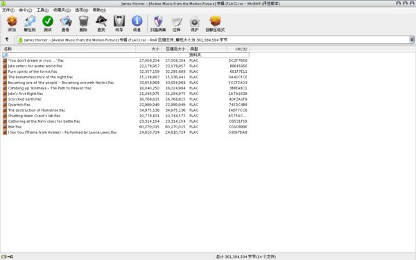 2009年James Cameron超级巨制Avatar的电影原声带,由泰坦尼克号作曲James Horner操刀。