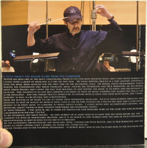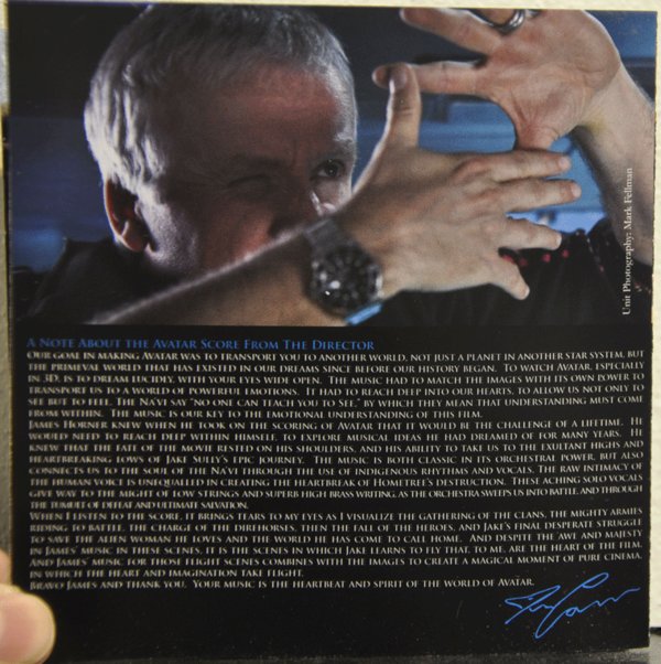James Horner knew when he took on the scoring of Avatar that it would be the challenge of a lifetime. He would need to reach deep within himself. To explore musical ideas he had dreamed of for many years. He knew that the fate of the movie rested on his shoulders, and his ability to take us to the exultant highs and heartbreaking lows of Jake Sully's epic journey. The music is both classic in its orchestral power, but also connects us to the soul of the Na'vi through the use of indigenous rhythms and vocals. The raw intimacy of the human voice is unequalled in creating the heartbreak of Hometree's destruction. These aching solo vocals give way to the might of low strings and superb high brass writing, as the orchestra sweeps us into battle, and through the tumult of defeat and ultimate salvation.