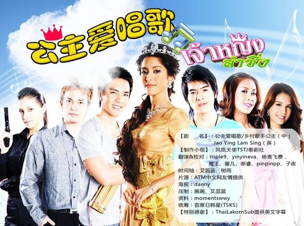 【剧  名】:公主爱唱歌/乡村歌手公主 【集  数】: 【首  播】:2008-12-03 【格  式】:Rmvb 【语  言】:泰语 【字  幕】:中字 【导  演】: 【主要演员】:        New Wongsakorn Poramathakorn .... Nawee        Pinky Sawika Chaiyadech .... Jao Kwanwarin        Nathalie Nattarinee Jiarawanon .... Rassamee        Ben Theerawee Atsawasirichaiyakul .... Saichon        Aom Akkaphan Namart .... Jao Passakorn        Jessie Danai Thuntanasiriwong .... Kawin        May Orwannasa Tarnwised .... Rotjana        Mai Sukontawa Gerdnimit .... Gumlai        Pla Palita Kosolsak .... Panida 【内容简介】:   讲的是公主(pinky)想做一个乡村歌手的搞笑故事,里面有很多命定之爱里的熟悉角色哦。   又是一个出逃的公主,只不过这个公主不爱军官爱乡村歌手,看似身份毫不搭调的两个人就这样相遇了...