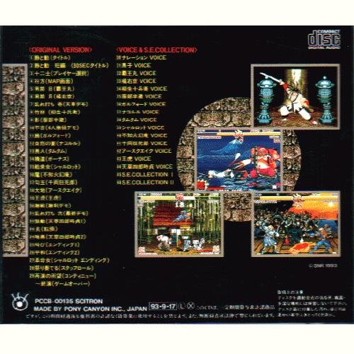 : 01 静と动(タイトル) 0:39 02 静と动 短编 (30SECタイトル) 0:32 03 十二士(プレイヤー选択) 0:39 04 行方(MAP画面) 0:08 05 男节 日(覇王丸) 3:56 06 男节 月(橘右京) 3:15 07 乱れ打ち 壱(天草デモ) 0:12 08 竹林(柳生十兵卫) 1:50 09 影(服部半蔵) 2:23 10 不吉(4人胜抜デモ) 0:30 11 鮪(ガルフォード) 2:18 12 自然の宴(ナコルル) 2:24 13 异人(タムタム) 2:16 14 精进(ボーナス) 1:27 15 舶来女(シャルロット) 1:46 16 魔(不知火幻庵) 3:18 17 勾玉(千両狂死郎) 2:15 18 大地(アースクエイク) 2:15 19 王虎(王虎) 2:19 20 胜戦(胜利デモ) 0:07 21 乱れ打ち 弐(最终デモ) 0:10 22 鼓动(天草四郎时贞1) 0:14 23 炎(転换) 0:10 24 暗黒(天草四郎时贞2) 3:10 25 叫び(エンディング1) 0:20 26 平和(エンディング2) 1:50 27 革命女(シャルロット エンディング) 0:51 28 祭りで奏でる(スタッフロール) 2:35 29 再演の所望(コンティニュー)~终演(ゲームオーバー) 0:16 30 ナレーション VOICE 0:19 31 黒子 VOICE 0:39 32 覇王丸 VOICE 0:25 33 橘右京 VOICE 0:22 34 柳生十兵卫 VOICE 0:19 35 服部半蔵 VOICE 0:20 36 ガルフォード VOICE 0:19 37 ナコルル VOICE 0:16 38 タムタム VOICE 0:19 39 シャルロット VOICE 0:20 40 不知火幻庵 VOICE 0:18 41 千両狂死郎 VOICE 0:21 42 アースクエイク VOICE 0:15 43 王虎 VOICE 0:14 44 天草四郎时贞 VOICE 0:22 45 S.E.COLLECTION Ⅰ 2:08 46 S.E.COLLECTION Ⅱ 1:28