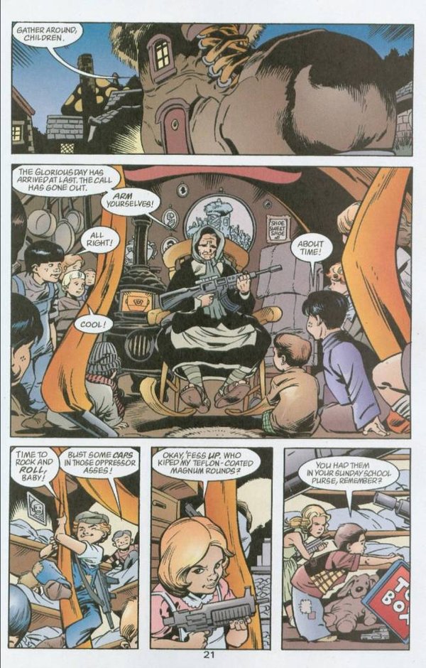 一直都觉得Fables很不可思议:只有一个作者的故事,居然可以有那么多种不同的风格,凭每幅图每行字烘托出各自独特而美妙的气氛。有时当一切仿佛从童话的淳朴天真逐渐飘远的时候,它却又在某个角落,不经意地转了回来。