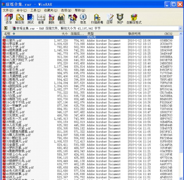 琼瑶全集,不含《还珠格格》,个人觉得喜欢《还珠》的朋友还是收藏剧集更合适。 不论您喜欢琼瑶与否,都不能否认她代表了当时相当多人的感情述求。 在现在这个多数人为物质而奔忙的时代,读读琼瑶的作品,不去想书中与现实的差异,也可以有进入另一种世界的愉悦,这也是本人奉上此资源的初衷。 PS:除《望夫崖》外,其余都加了书签,《望》为何没加完,看了该书自知。