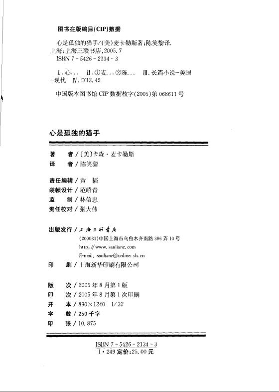 卡森·麦卡勒斯,20世纪美国最重要的作家之一,1917年2月19日生于美国佐治亚州的Columbus。29岁后瘫痪。著有《心是孤独的猎手》、《婚礼的成员》、《黄金眼睛的映像》、《没有指针的钟》等小说作品。1967年9月29日麦卡勒斯在纽约州的Nyack去世,时年50岁。
