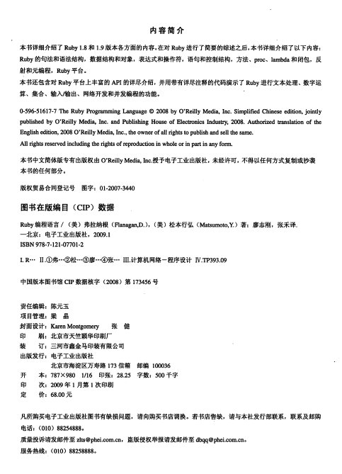 Ruby编程语言 涵盖Ruby 1.8和1.9 中文高清PDF版 The Ruby Programming Language 美 弗拉纳根 松本行弘 扫