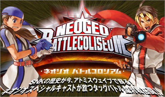 曾推出 MVS 街机系统与兼容主机 NeoGeo 的 SNK Playmore,日前推出集合了 NeoGeo 多款游戏角色的街机对战格斗游戏《NeoGeo 格斗竞技场(NeoGeo Battle Coliseum)》,本游戏使用 Sammy 的 Atomiswave 街机基板所制作,是一款 2 对 2 的对战格斗游戏,收录的范围将跨越游戏类型与时空背景,包括动作游戏的《越南大战(Metal Slug)》,江户时代的《侍魂(Samurai Spirits)》,幕末的《月华剑士》,现代的《饿狼传说》、《英雄榜(World Heroes)》,以及招牌格斗游戏《拳皇(KOF)》等系列作品,加上原创角色,将有超过 20 名角色可供玩家选择。