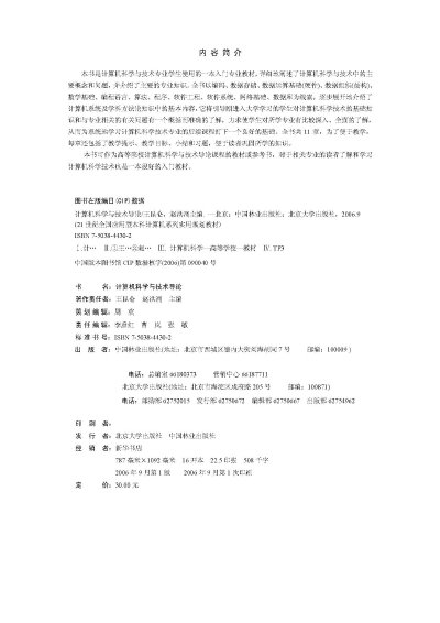 : 第一章 计算机科学与技术概述 第二章 编码、数据和数据存储 第三章 计算机数据运算基础 第四章 程序设计语言 第五章 数据组织与算法 第六章 数学与计算机科学 第七章 软件工程 第八章 计算机软件系统 第九章 网络基础和技术 第十章 数据库系统 第十一章 计算机应用基础 附录 部分常用文件扩展名列表 参考文献 知识中国近期升级改版并申请独立域名,欢迎文化创意与知识爱好者及时关注: 知识中国新浪微博http://weibo.com/zhishizhongguo