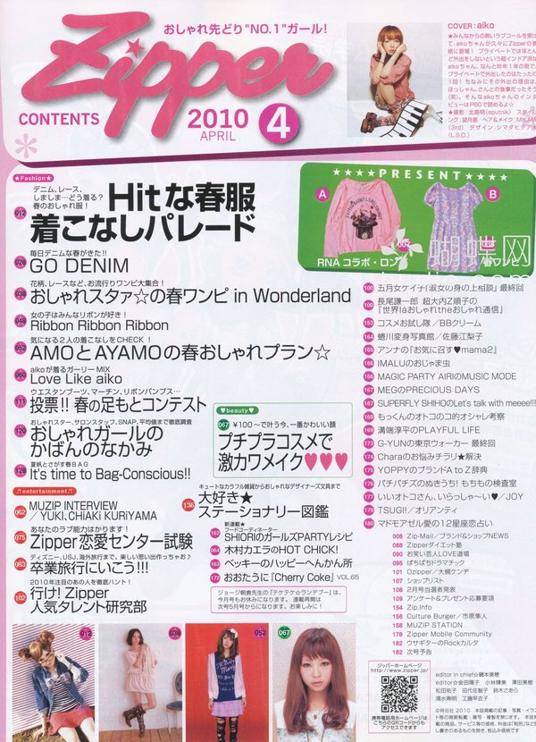 如果想要了解现今日本少女流行什么、想要了解如何搭配个性化的日式穿衣风格、同时找出自己的style,那麽Zipper绝对是你不可错过的选择!