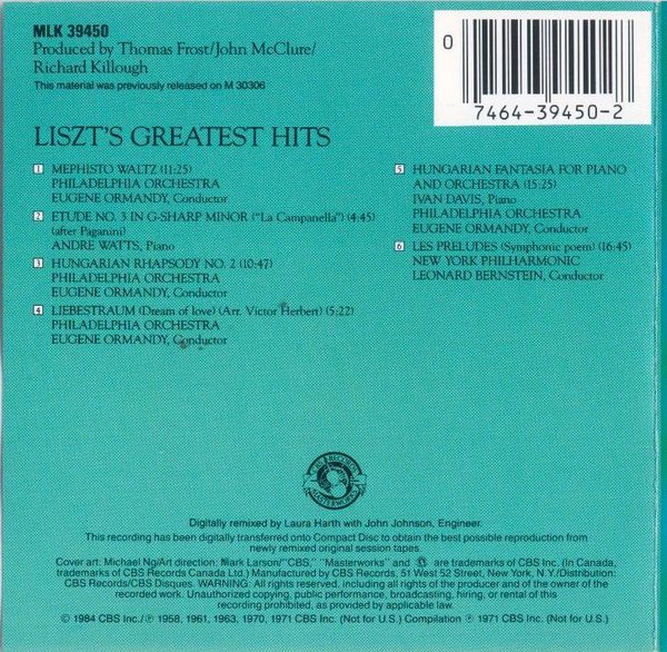 : 1.Mephisto Waltz 2.Etude No. 3 In G-Sharp minor 3.Hungarian Rhapsody No. 2 4.Liebestraum (Dream of Love) 5.Hungarian Fantasia For Piano And Orchestra 6.Les Preludes (Symphonic Poem)