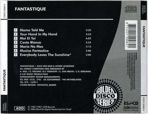 俄罗斯的ESonCD唱片公司自2003年以来先后发行了一些上世纪70-80's的欧洲舞曲唱片,包括一些鲜为人知的乐队及眾所周知的Boney M, Silent Circle等名团.来自荷兰的Fantastique双人组成名舞曲 Mama Told Me, Costa Blanca 使该团在1980年步入巅峰.在1981年10月的荷兰四十名曲榜单名列前五...