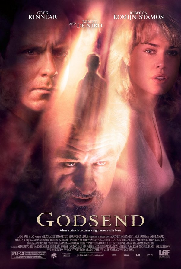 导演:尼克·哈姆 Nick Hamm 编剧:马克·伯姆贝克 Mark Bomback 主演:格雷戈·金尼尔Greg Kinnear    丽贝卡·罗明-斯塔莫斯Rebecca Romijn-Stamos    罗伯特·德尼罗 Robert DeNiro    卡梅隆·布莱特 Cameron Bright 类型:剧情/科幻/恐怖/惊悚 级别:PG-13(暴力、性涉及) 发行:狮门影业 Lion's Gate Films 映期:2004年4月30日 官方网站:http://www.godsendthemovie.com ◆幻灭,复燃,惊魂——剧情索引◆ 亚当·邓肯 出生日期:1987年12月11日 死亡日期:1995年12月12日 复活日期:1996年9月26日   邓肯夫妇(格雷戈·金尼尔、丽贝卡·罗明-斯塔莫斯饰)唯一的儿子亚当(卡梅隆·布莱特饰)在一次意外事件不幸身亡,视子如命的邓肯夫妇顿时失去了情感支点,恍如坠入无底深渊。现实终究无法逃避,两夫妻开始着手安排爱子的葬礼时,一位遗传研究医生理查德·威尔斯(罗伯特·德尼罗饰)走进了他们的生活,这位技艺精湛的人物大胆地提出了一项充满诱惑力的建议——克隆亚当。   亚当的细胞肩负着新生命的源泉,克隆技术为复制亚当作出了技术储备。背离了道德、法律以及伦理的约定,邓肯夫妇偷偷搬到了Riverton小镇,企盼着亚当的重生。一切出乎意料的顺畅,逝去的生命再次降临烦躁的城市,失而复得的快乐使邓肯夫妇欣喜若狂,他们感谢威尔斯医生的妙术,更感谢上帝的仁慈怜悯,小心呵护这新的生命成为了倍感重大的责任。平安的日子不知不觉度过了整整8年。亚当的记忆波澜开始浮动,梦魇与惊恐时常伴随左右,人格分裂精神战栗的阴影自始盘旋,梦醒之日遥遥无期…… -------------------------------------------------------------------------------- ◆成于斯,长于斯——创意◆   香港回归之年的克隆绵羊多利的诞生轰动了世界,国内外专家和媒体毫不吝惜言词地称之为生命科学的重大突破,并将之誉为当年的十大科技新闻之首,而这其中最主要的原因不外乎是动物克隆技术的运用,一时间这种音译自英文Clone,意为无性繁殖系(即通过无性繁殖可连续传代并形成的群体)的科学事件,被冠以多种神秘花环的彩饰,使人产生一种因无知而不得已的仰视感觉。   完美无暇使人流连忘返,一旦失去,费尽心机使其失而复得又成了心中之痛。一颗善良之心的仙逝总能让人充满了重生的幻想,但无论何时,人类尝试扮演的上帝造物的角色,只会带来悲剧与恐怖的结局,《上帝所赐》显然并没有把自己剥离出这种定式之外。尤其是,克隆人问题一再敏感,各国媒体大多的否定或抨击态度,都成为了一种上帝造物的现实化的可乘之机,自此就有了诸如本片的后继胶片。本片的创意,编剧伯姆贝克的解释是怀孕的妻子激发了他的创作灵感,而医学世家的熏陶也多少对影片的技术细节有了较大的帮助。数年的资料搜集整理,无数次的修改推敲,整个轮廓才得以初步展现。源于科学发展,披上科学的嫁衣后重返现实世界,是娴熟的编剧套路展示。 -------------------------------------------------------------------------------- ◆用心,用智,用力——明星摘录◆   诡异色彩与神幻基调只是惊悚片必不可少的辅料,堂堂正正的现代科学才是英国最值得尊敬的戏剧导演之一尼克·哈姆最直接的嗅觉所在。这是他的第一部美国电影,代表的只能是观众们疑惑的目光。饱满丰润的视觉风格烘衬了惊悚元素的氛围,这里面制作设计克莱默与摄影师摩根索功不可没。此外,制片方面还挖到了伍迪 ·艾伦的死党麦克·科比,相信其为剧中那饱经磨难的三口之家设计的贴近心理变化的衣着服饰搭配,会有推波助澜的功效。   爱子若痴的邓肯夫妇分别由奥斯卡提名演员格雷戈·金尼尔,以及素有“蛇蝎美人”之称的丽贝卡·罗明-斯塔莫斯出演。格雷尼·金尼尔演技多面,曾分别因《护士贝蒂》 (Nurse Betty),《我们曾是战士》(We Were Soldiers),《聚焦人生》(Auto Focus)等棱角分明的形象深入人心。而至于本次的演出应以可圈可点定位为准。丽贝卡·罗明-斯塔莫斯以近似端庄的造型从昔日别致性感的角色泥沼中走了出来。先以T型台秀出姿容与完美曲线,后靠Poeple杂志的“世界五十个最美的人”引人注目,凭借《老友记》的客串首次进入摄像机视角,最终攀升为一名脸熟的好莱坞女演员。数年中,《X战警》、《西蒙尼》以及《蛇蝎美人》(Femme Fatale)是她作品年表中为数不多的珍藏。步步为营的处世风范使丽贝卡沐浴了好莱坞的春风,不过只有克服花瓶形象的先入为主才能使其星光大道的征程指日可待。   卡梅隆·布莱特有135个月大。他在下一部电影《Birth》中的灵异特制,将会弄得妮可儿·基德曼对其是已故丈夫的化身这一点深信不疑。这种高度精神异类的演出多少都对正处于成长期的他有负面影响,不过若为名利故,其他皆可抛的典故早是好莱坞约定俗成的真理了。至于罗伯特· 德尼罗老先生,他哪怕拿出的不是最佳演技,一样可以得到观众的认可。 -------------------------------------------------------------------------------- ◆感觉而已◆   一个克隆人不是一个正常人;克隆创造人,在充当“上帝”的职责;克隆不是一种自然过程;克隆人没有心灵。身体上任何一部分的细胞都可以用来克隆;每人都能拥有克隆人;如果克隆植物人等等没有意识的人,克隆出来的器官可以提供给人类;伟大的历史人物、英雄可以重生;把人的细胞核放进绵羊的卵子里会有奇迹发生;人可以无休止地被克隆。   个人想法间通常都是大相径庭,由于无知而产生
