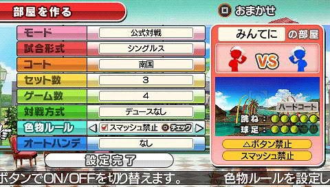 PSP掌机独占新作《大众网球:携带版》将会继承PS2版《大众网球》系列作的一冠风格。提供亲和的角色、简单的操作与轻松愉快的运动游戏体验。游戏中玩家将可选择 14 名以上不同类型与个性的各种 Q 版造型角色,在具备世界各国风格的十二个网球场中;以简单的操作进行激烈的网球对战,并可支持最多2至4名玩家同乐的对战游玩。