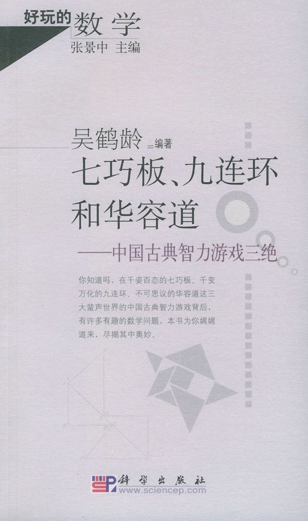 本书介绍蜚声世界的我国三大古典智力游戏,即七巧板、九连环和华容道。对这三个游戏的起源、发展和演变有详尽的叙述和考证,重点讨论其中的数学问题,如七巧板能构成多少凸多边形,九连环状态与格雷码的对应,解华容道的网络图等。本书题材广泛,材料丰富、翔实,文笔流畅,内容生动、有趣、有益,读来引人入胜。 本书适于有高中及高中以上文化程度的各阶层、各年龄段人群阅读。