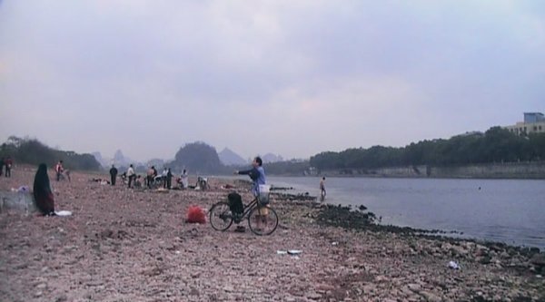 解放桥下是漓江一段最宽阔的水域,每天都可以看见附近的渔民划着竹排漂浮在江上撒网打渔。虽然漓江的水还算清澈,但随着工业发展、排污和过度捕捞,现在已经很难捕到鱼了。渔民的最后几只鸬鹚也只得停歇在船头上无事可做。作为漓江的一个天然泳场的訾洲也因为近期的施工而少了很多繁华,原来铺满鹅卵石的河滩因为填了砂土而变得有些坑坑洼洼。但仍有一部分游泳爱好者坚持每天到访,持续着与河流的联系……