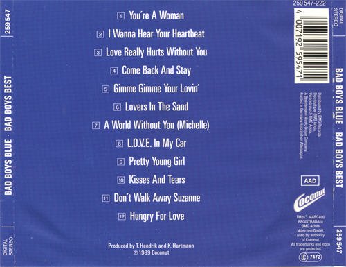 : 01. You're A Woman (4:00) 02. I Wanna Hear Your Heartbeat (4:06) 03. Love Really Hurts Without You (3:48) 04. Come Back And Stay (4:08) 05. Gimme Gimme Your Lovin' (4:01) 06. Lovers In The Sand (3:48) 07. A World Without You (Michelle) (3:39) 08. L.O.V.E. In My Car (4:34) 09. Pretty Young Girl (3:42) 10. Kisses And Tears (3:59) 11. Don't Walk Away Suzanne (3:50) 12. Hungry For Love (5:56)