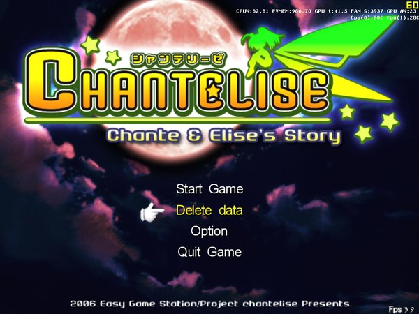 EasyGameStation的作品   EGS首次完全原创的3D动作游戏   姊妹游戏第4子弹   爽快的操作感,华丽的魔法   造型声动,景色更加华丽   一贯可爱的人物造型   众多隐藏要素   [主角人物介绍]   シャンテ(CHANTE)   本来是一个普通的人   某天突然变成了妖精   因为一直想变成原来的样子   和妹妹ELISE旅行着   擅长攻击系的魔法   エリーゼ(ELISE)   为了帮姐姐CHANTE变回到普通人   和姐姐一起旅行着   经常被姐姐开玩笑   喜欢可爱的东西   其实相当中意姐姐的妖精身材   挥舞与奢华的身体不相称的大剑