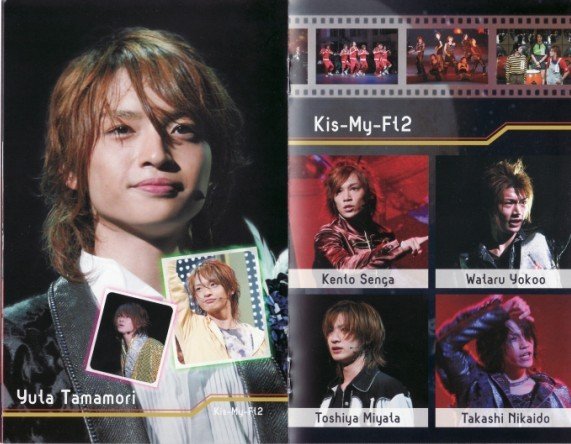 K 北山宏光 きたやま ひろみつ 1985年9月17日 - 、A型 i 饭田恭平 いいだ きょうへい 1987年11月18日 - 、)(前团员,已退出) s 千贺健永 せんが けんと 1991年3月23日 - 、AB型 M 宫田俊哉 みやた としや 1988年9月14日 - 、A型 y 横尾渉 よこお わたる 1986年5月16日 - 、A型 F 藤ヶ谷太辅 ふじがや たいすけ 1987年6月25日 - 、AB型 t 玉森裕太 たまもり ゆうた 1990年3月17日 - 、B型 2 二阶堂高嗣 にかいどう たかし 1990年8月6日 - 、B型 加入过的团员 NEWS 增田贵久(NEWS出道后,曾因为Kis-My-Ft.2临时需要一位名字字首为M且会溜冰的人,而在少俱上代演过。) M.A.D. 武内幸太朗 加藤幸宏 Jr. 冨田真央 事务所退社 松本光平