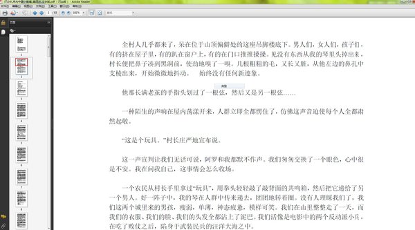 阿罗和我两人弄到肉食,便到四眼处一起烧了吃,喝酒谈天,也是一乐。但四眼总存有戒心。一次,他们意外发现四眼带来一箱书,要帮了四眼大忙,才肯借出一本,而且几天里就要归还。他们为借书,再难的事也肯做。四眼把他们为自己收集来的民歌,用革命的词句包装一下,投寄成都一刚复刊的文艺杂志,杂志主编是四眼母亲早年的崇拜者,决定调四眼进城,成为千分之三的幸运者。四眼返城前夕,在场院宰牛设宴,酬谢乡亲;阿罗和我就乘这时机,把四眼一箱书偷到手。书箱里,全是巴尔扎克、雨果、斯汤达、大仲马、福楼拜、罗曼?罗兰、托尔斯泰等的名著。阿罗把手按在书箱上,像发誓似的说:“有了这些书,看我不把小裁缝变个样。她不会再是一个头脑简单的山村姑娘。”晚上有空,他们就伴小裁缝做活,一边讲外国故事。小裁缝按小说的描写,改自己的服饰,还根据《包法利夫人》,为自己做了个胸罩。