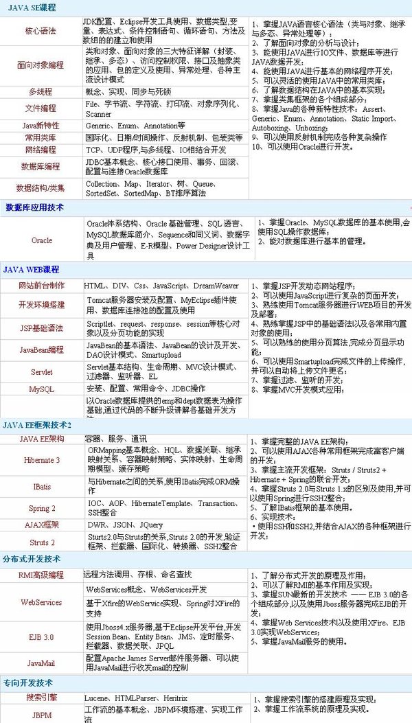 : Java软件工程师可以从事小到一般网站,大到ERP管理系统的开发,根据调查情况表明,未来10年内,使用Java语言开发占整个软件业的半壁江山;目前,我国的政府机构、银行、保险公司,企事业等单位的大型系统都是使用Java语言开发。 课程大纲: