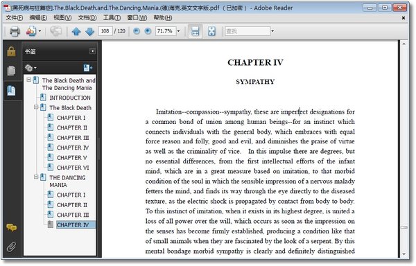: The Black Death CHAPTER I GENERAL OBSERVATIONS CHAPTER II THE DISEASE CHAPTER III CAUSES--SPREAD CHAPTER IV MORTALITY CHAPTER V MORAL EFFECTS CHAPTER VI PHYSICIANS The Dancing Mania CHAPTER I THE DANCING MANIA IN GERMANY AND THE NETHERLANDS CHAPTER II THE DANCING MANIA IN ITALY CHAPTER III THE DANCING MANIA IN ABYSSINIA CHAPTER IV SYMPATHY