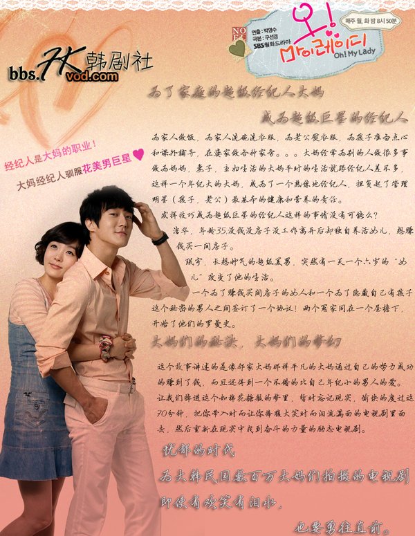 【中文剧名】哦.我的女人 【韩文剧名】오 마이 레이디 【电视台】韩国KBS 【首 播】2010年03月22日 【回 数】16集 【导 演】朴英洙 【编 剧】丘善京 【演 员】蔡琳 崔始源 李贤宇 朴寒星 【格 式】RMVB 【语 言】朝鲜语 【字 幕】中文字幕 【制作出品】:FK韩剧社&宝蓝殿堂&始源家族&百度ohmylady吧联合发布 【