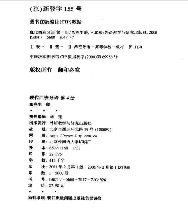 《现代西班牙语》第一至四册是供高等院校西班牙语专业本科一、二年级使用的口笔语实践课教材,基本上保留了商务印书馆出版的《西班牙语》(同一编者)的结构和体例,但是课文内容几乎全部更新,以适应时代的需求。此外,考虑到学生接受能力的提高,语法难点的配置相应集中,词汇量明显增加。为了便于学生理解和掌握,语法术语的译名也参照国内汉语和英语教学的常用表述方式做了适当调整。