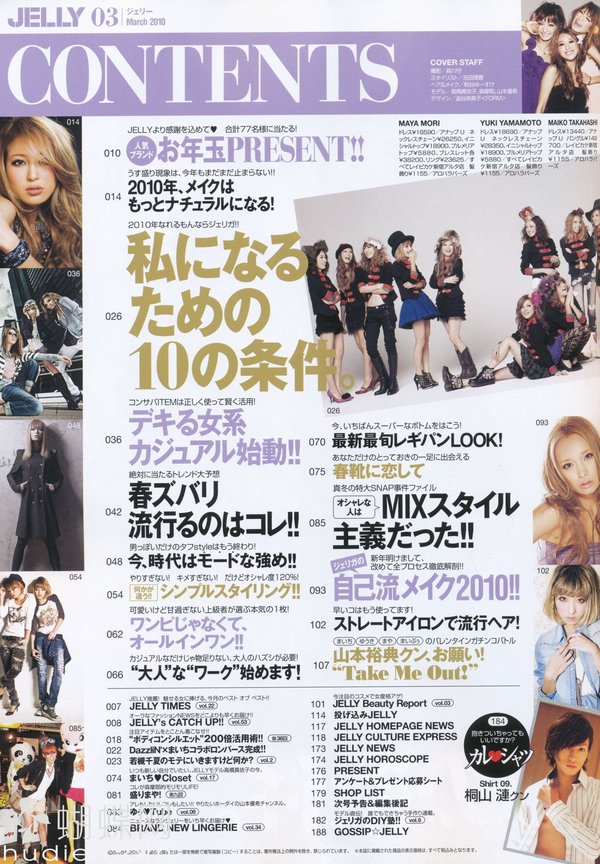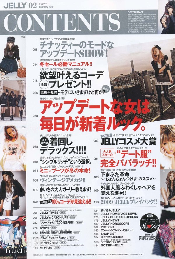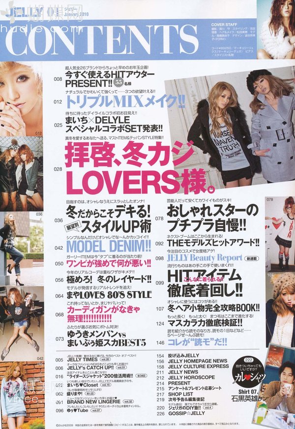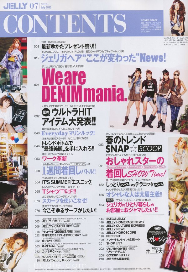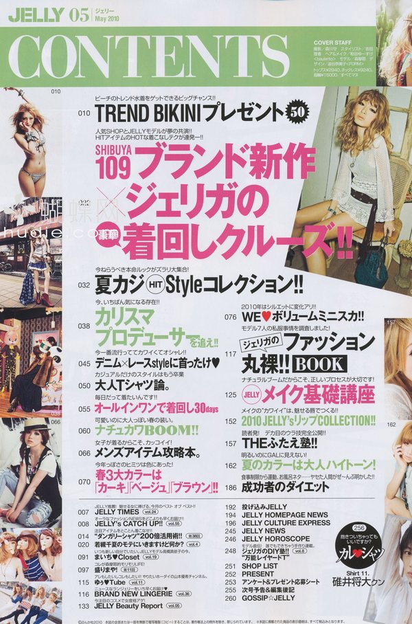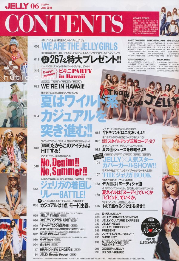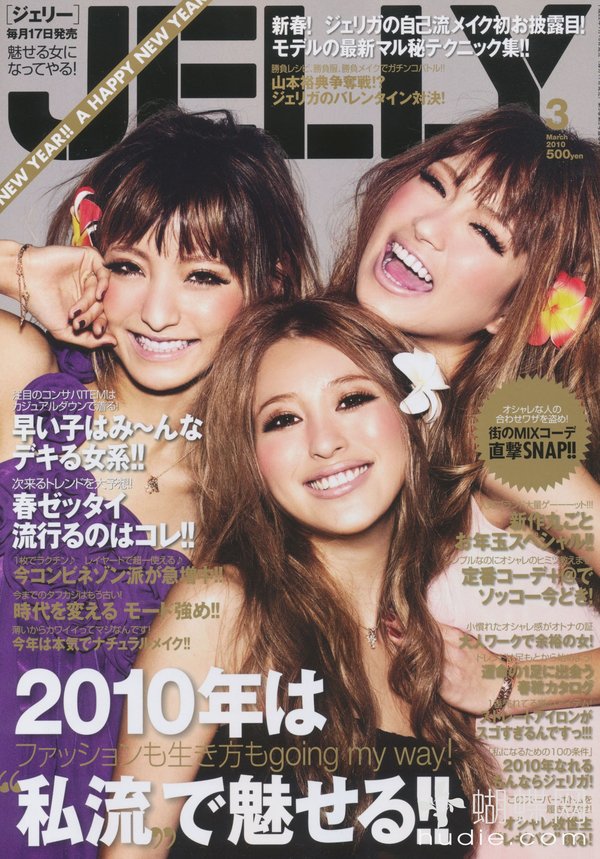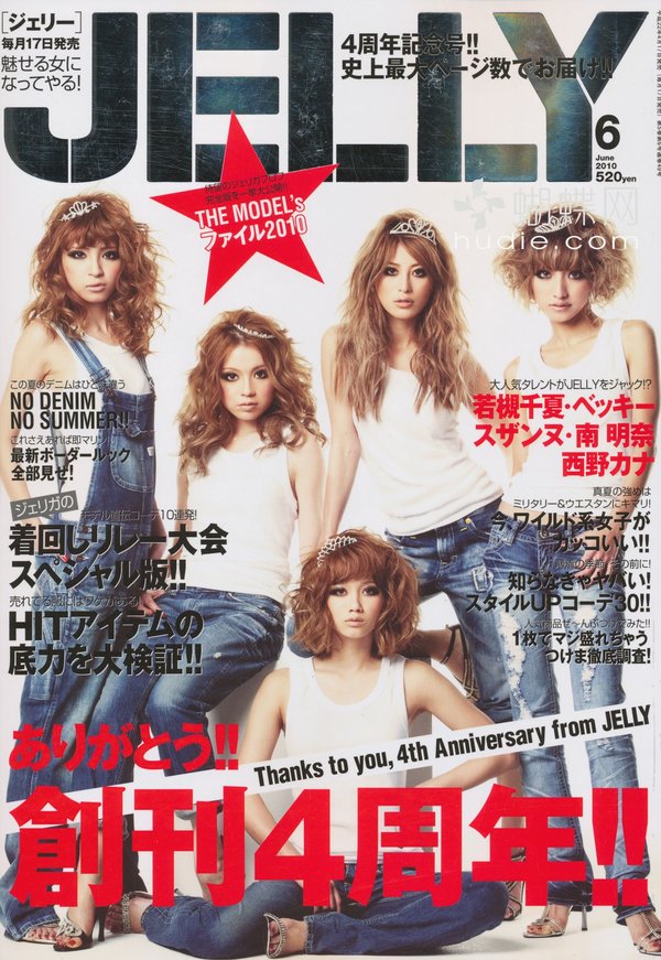 《JELLY》日本甜美性感类服饰杂志,在亚洲大受欢迎,受到无数时尚MM追捧。JELLY追寻的呛辣女孩休闲穿衣风 就是要妳穿出难以抗拒的致命吸引力!以基本的休闲风为主轴,时而性感媚惑、又带点强悍与韧性,并且将时下潮流元素导入MIX,我时尚,我休闲,所以我性感!这就是《JELLY》杂志的真谛所在。