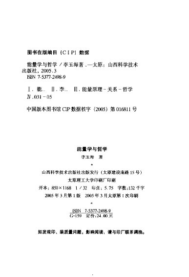: 前言 导语 附录0:名词与原理 第一章 系统 第一节 系统 一、概念 二、系统与事件 三、系统与系统关系 第二节 哲学思想分析:主观性与客观性 一、原理内容 二、原理分析 三、应用:系统的划分 第二章 能量 第一节 能量 一、概念定义 二、能量的载体和表现形式 三、能量的属性 四、自组织与能量 第二节 哲学思想分析:本质与现象 一、原理内容 二、原理分析 三、应用:光的认识 第三节 系统与能量 一、概念 二、能量的交换系统 三、能量流动状态 第四节 能耗最小原理 一、原理内容 二、原理分析 第五节 哲学原理:简单与复杂 一、原理内容 二、原理分析 三、应用:符号与能量 四、附:O.618与战争 第三章 能量理论基础 第一节 能量守恒定律 一、能量守恒定律 二、能量形式相互转化的发现简史 三、能量转化的换算因子 第二节 哲学原理:世界是联系的一体 一、原理内容 二、原理分析 三、应用 四、热的认识 第三节 热力学第二定律 一、热力学第二定律 二、熵与熵增原理 第四节 哲学观点:宇宙热寂论 第五节 耗散结构理论 一、热力学第二定律与耗散结构理论 二、贝纳尔对流 三、耗散结构理论 …… 第四章 能量与物质 第五章 能量与运动 第六章 能量与力 第七章 能量与空间 第八章 能量与时间 第九章 能量与秩序 第十章 能量与人类 第十一章 能量与意识 第十二章 能量是世界的本质 附录 后绪:易 知识中国的好友邀请链接 知识中国电驴乐园个人主页