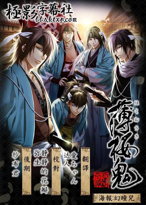 根据IDEA FACTORY于08年9月发行的PS2女性向恋爱冒险游戏「薄樱鬼~新选组奇谭~」改编的TV动画,将于今春开播。故事发生在日本动乱的幕末时期,因父亲的神秘失踪而决定女扮男装前往京都探访的主角雪村千鹤,因缘际会之下加入了新选组,从此和新选组展开与黑暗的战斗。作品中,收录有大量的幕末史实的同时,也有本作的独有崭新要素,与史实有差异的展开也被过渡到多方面。作为一款女性向游戏,美型的角色自然是不在话下,动画版沿用广播剧CD那华丽的参演阵容也让众声控们眼前一亮。