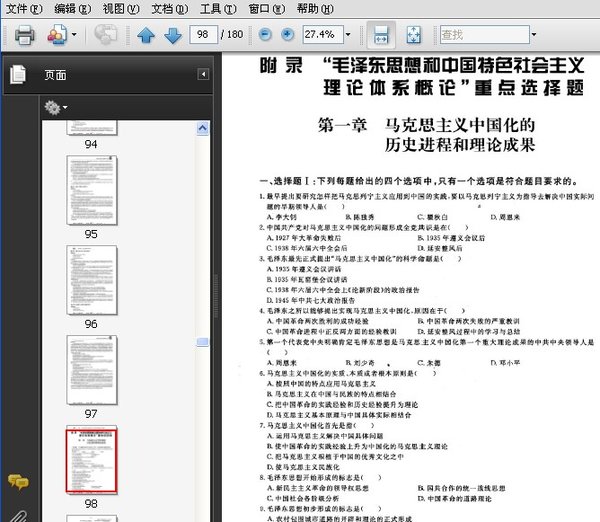: 第一部分 毛泽东思想和中国特色社会主义理论体系概论 第二部分 马克思主义基本原理概论 第三部分 中国近现代史纲要 第四部分 思想道德修养与法律基础 第五部分 当代世界经济与政治 附录 “毛泽东思想和中国特色社会主义理论体系概论”重点选择题