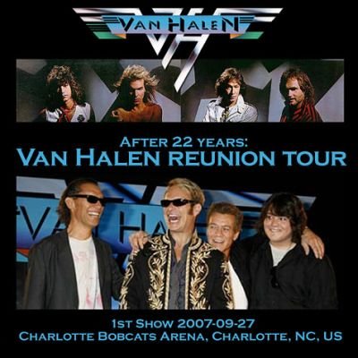 经过在多方打探和搜索,确认这张专辑录制于 2007-09-27 (星期四)北卡罗来纳州夏洛特山猫球馆 (Charlotte Bobcats Arena) 的现场【第一场】,最全的是 26 首曲目的双CD版本,这张则少了开头的两首:Warm Up - 1:11,以及 You Really Got Me - 3:19,直接从第三首开始。我下载了另外的封面,以满足 VH Fans 的胃口。